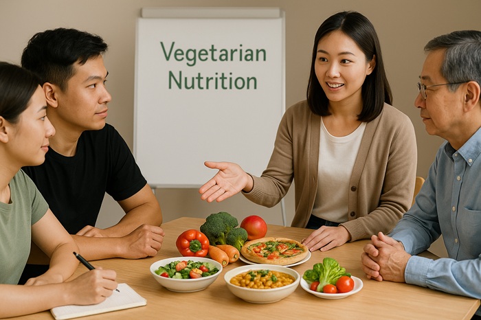 Nội dung khoa học: Bao gồm nguyên tắc dinh dưỡng chay, nguồn cung cấp protein, vitamin B12, sắt, canxi và omega-3 từ thực vật.